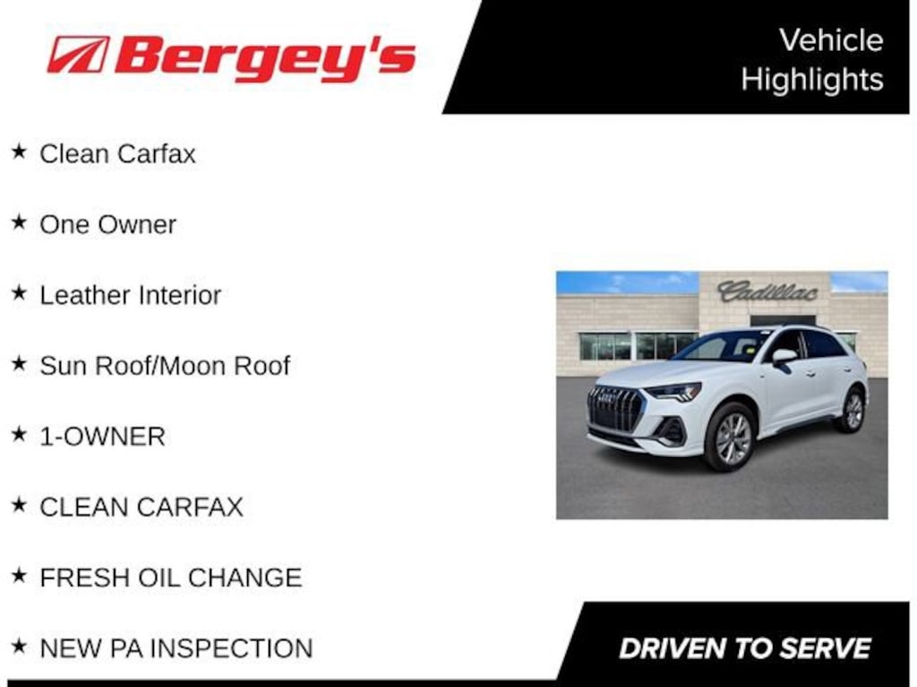 Powered by a 2.0L 4-Cylinder TFSI engine and equipped with Audi's renowned quattro all-wheel-drive system, this Q3 delivers a dynamic and confident driving experience. With an EPA-estimated 21 MPG in the city and 28 MPG on the highway, you can enjoy the perfect balance of performance and efficiency.
