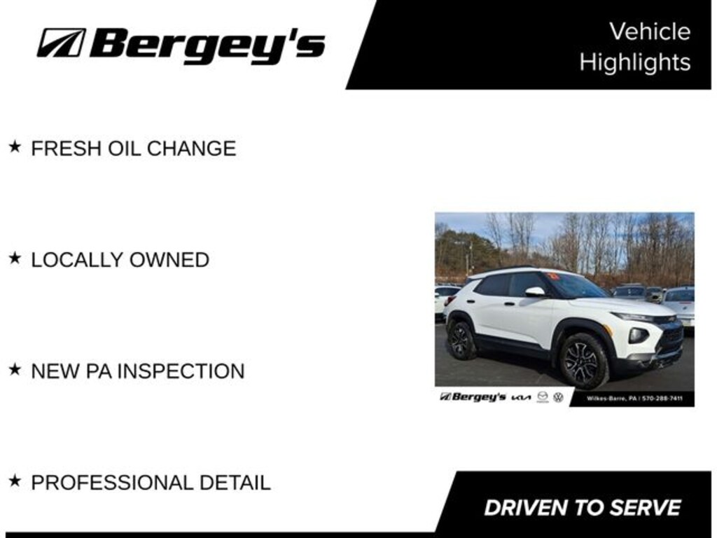 Schedule Service Summit White 2021 Chevrolet TrailBlazer ACTIV AWD 9-Speed Automatic 1.3L Ecotec Turbo DOHC SIDI w/VVT FRESH OIL CHANGE, LOCALLY OWNED, NEW PA INSPECTION, PROFESSIONAL DETAIL.