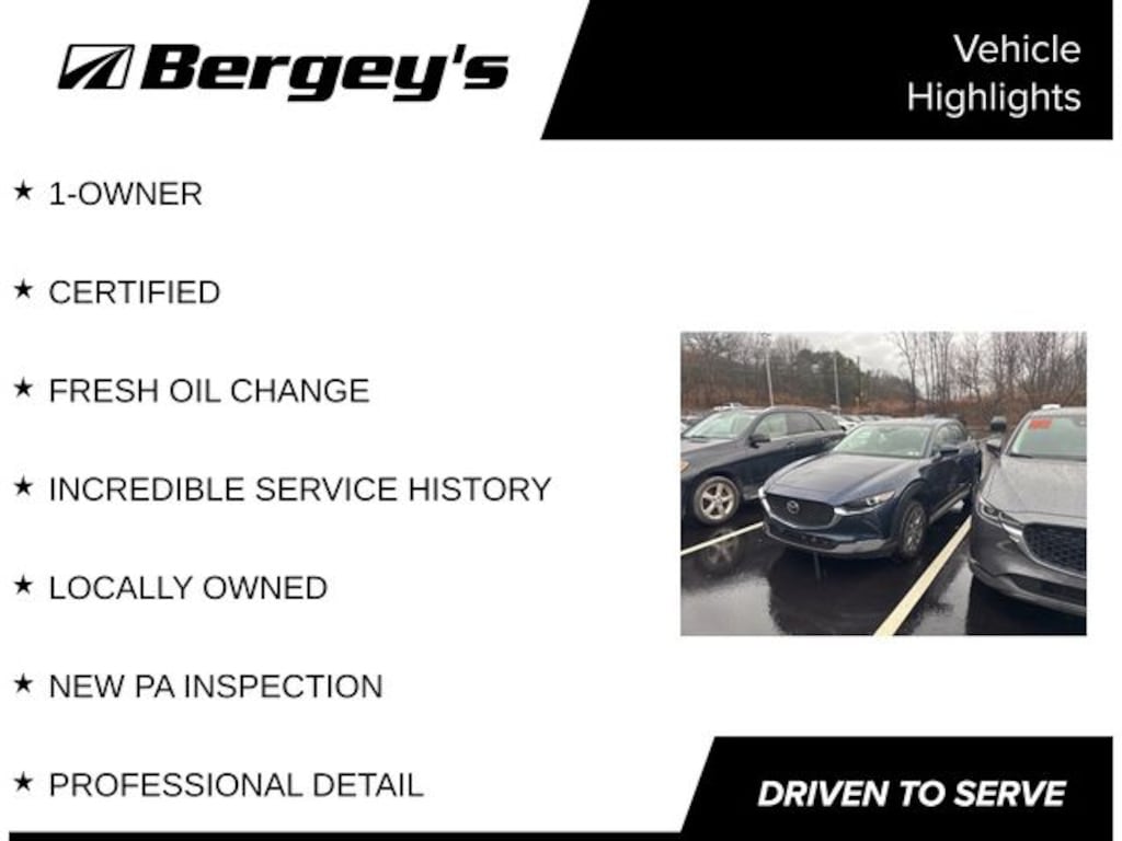 Schedule Service Certified. Deep Crystal Blue Mica 2024 Mazda CX-30 2.5 S AWD 6-Speed Automatic SKYACTIV® 2.5L 4-Cylinder DOHC 16V 1-OWNER, CERTIFIED, FRESH OIL CHANGE, INCREDIBLE SERVICE HISTORY, LOCALLY OWNED, NEW PA INSPECTION, PROFESSIONAL DETAIL.