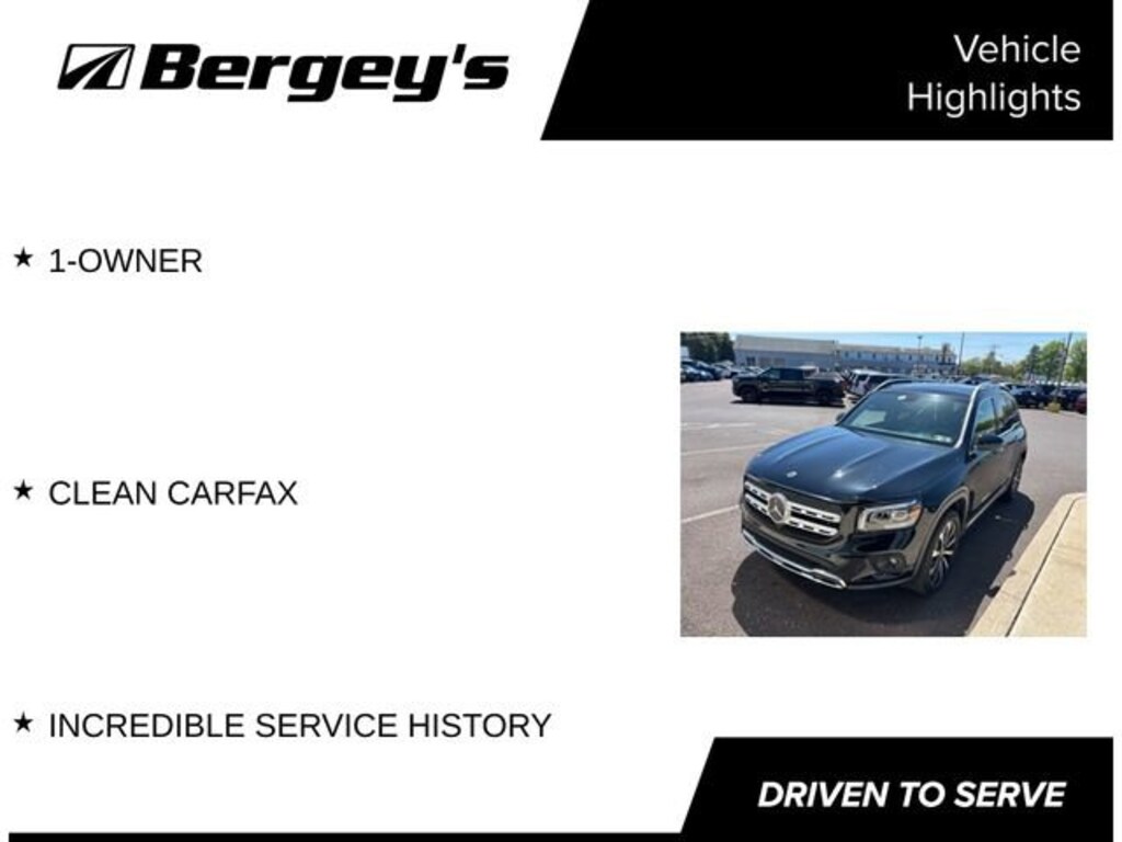 Elevate your driving experience with this stunning 2023 Mercedes-Benz GLB GLB 250 4MATIC®. This exceptional SUV combines sleek style, impressive performance, and an array of premium features that will elevate your daily commute and weekend adventures.Boasting a remarkable service history and a clean CARFAX report, this 1-owner GLB 250 4MATIC® is a true gem. Key highlights include:- 1-OWNER- CLEAN CARFAX- INCREDIBLE SERVICE HISTORYBeneath the hood, you'll find a powerful 2.0L I4 Turbocharged engine paired with an 8-Speed Dual Clutch transmission and Mercedes-Benz's renowned 4MATIC® all-wheel-drive system. This dynamic powertrain delivers an exhilarating 22 city/30 highway MPG, ensuring both thrilling performance and exceptional efficiency.The GLB 250 4MATIC® is meticulously equipped to elevate your driving experience. Indulge in the premium audio system, enjoy the convenience of Apple CarPlay® and Android Auto®, and stay connected with the advanced Mercedes-Benz User Experience (MBUX) infotainment system. Dual-zone automatic climate control, a power liftgate, and a rearview camera provide added comfort and convenience.Safety is paramount in the GLB 250 4MATIC®, with features like Electronic Stability Control, Brake Assist, and a suite of advanced airbags to give you and your loved ones peace of mind on the road. The four-wheel independent suspension and speed-sensing steering ensure a smooth, responsive, and confident driving experience, whether navigating city streets or winding country roads.Elevate your driving experience and make a lasting impression with this exceptional 2023 Mercedes-Benz GLB GLB 250 4MATIC®. Schedule a test drive today and discover the unparalleled quality, performance, and luxury that only a Mercedes-Benz can provide.