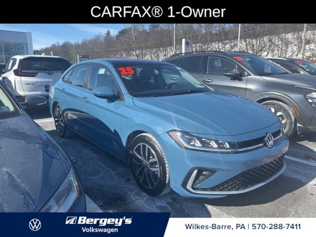 Schedule Service Certified. Monterey Blue 2025 Volkswagen Jetta 1.5T SE FWD 8-Speed Automatic with Tiptronic 1.5L I-4 DI DOHC Turbocharged 1-OWNER, CERTIFIED, FRESH OIL CHANGE, NEW PA INSPECTION, PROFESSIONAL DETAIL, Grigio/Titan Black Artificial Leather, Power Tilting & Sliding Sunroof, Sunroof Package.